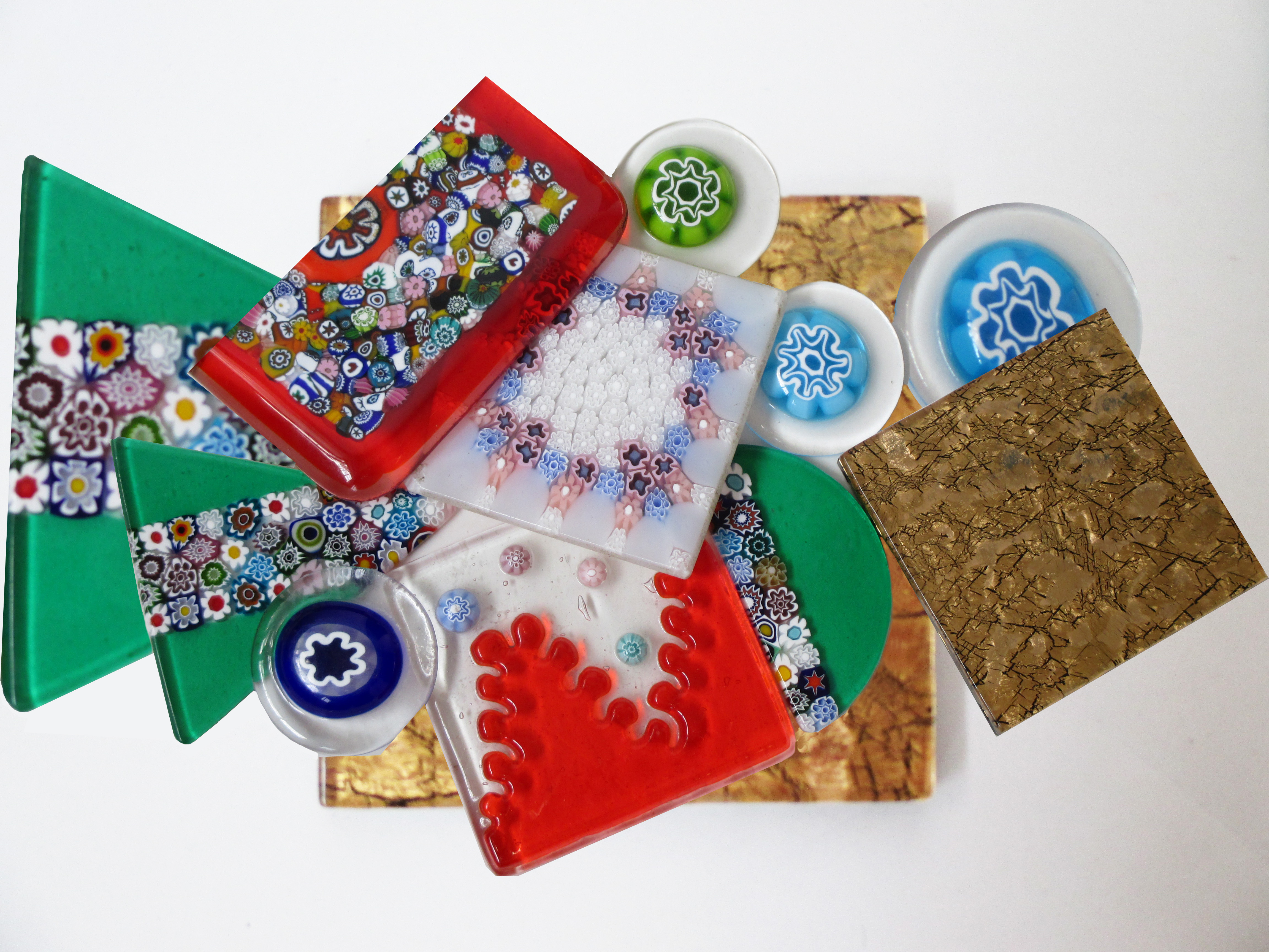 FORMELLA CON VETRI CATTEDRALE FORMELLA CON GRANIGLIE DI VETRO FUSE DECORI A GRANIGLI...